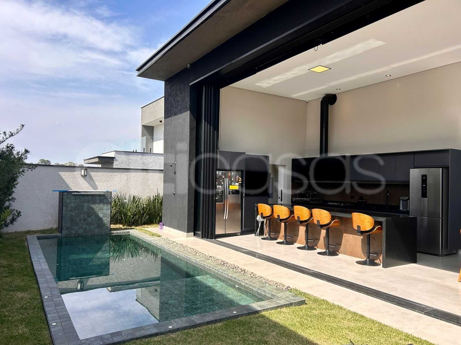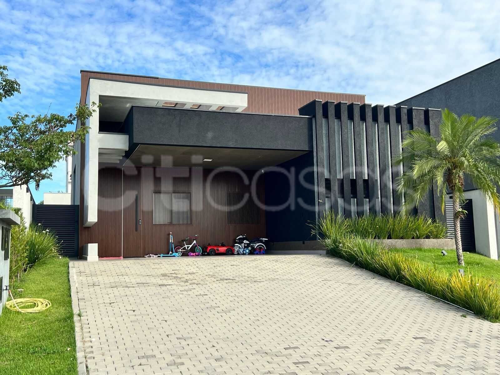 Casa térrea moderna, novíssima (1 ano de uso), com pé-direito de 4,60 m, acabamento de alto padrão e projeto contemporâneo.
