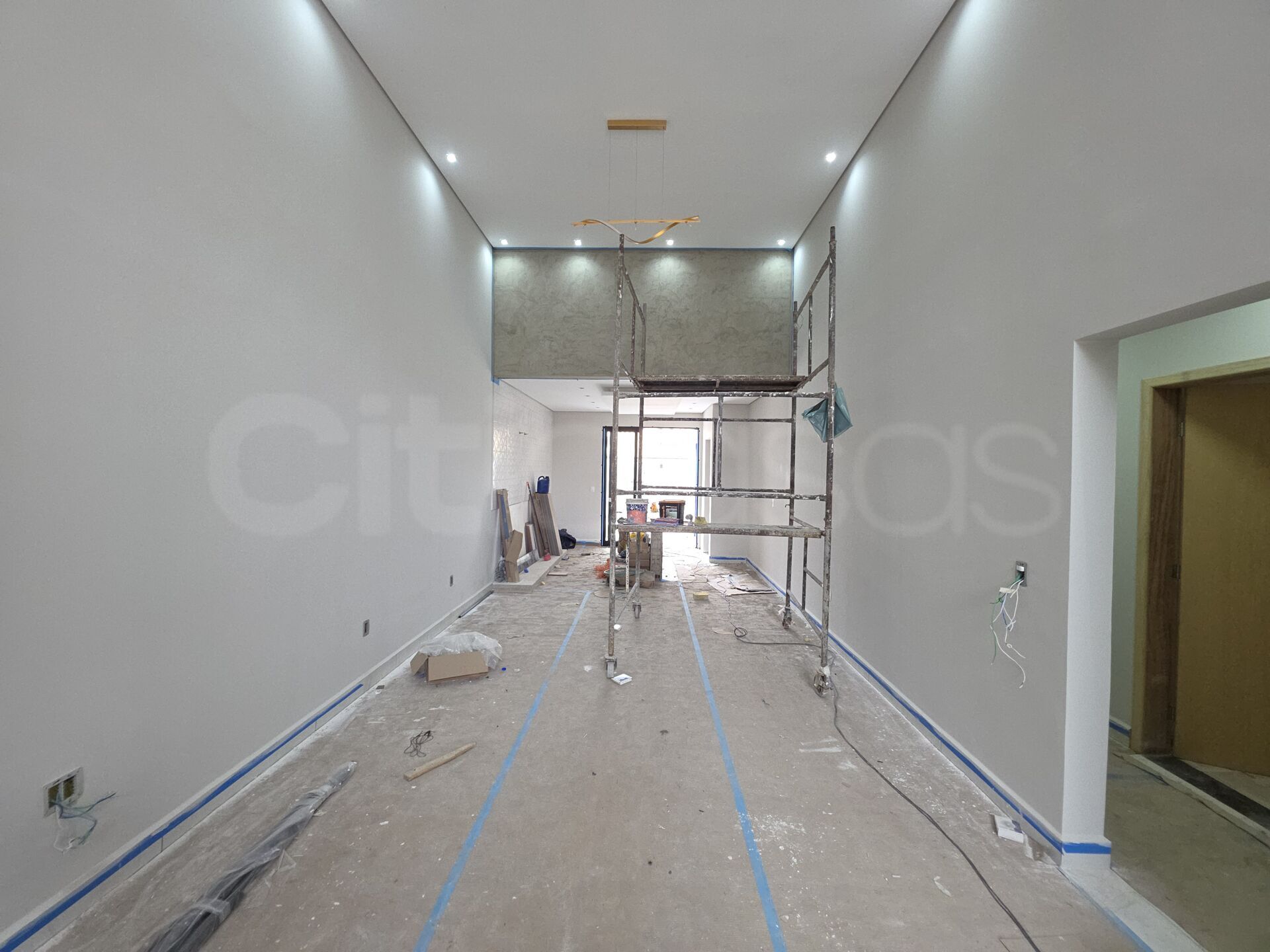 - Área Interna: 03 suítes completas, lavabo social e sala integrada à cozinha.