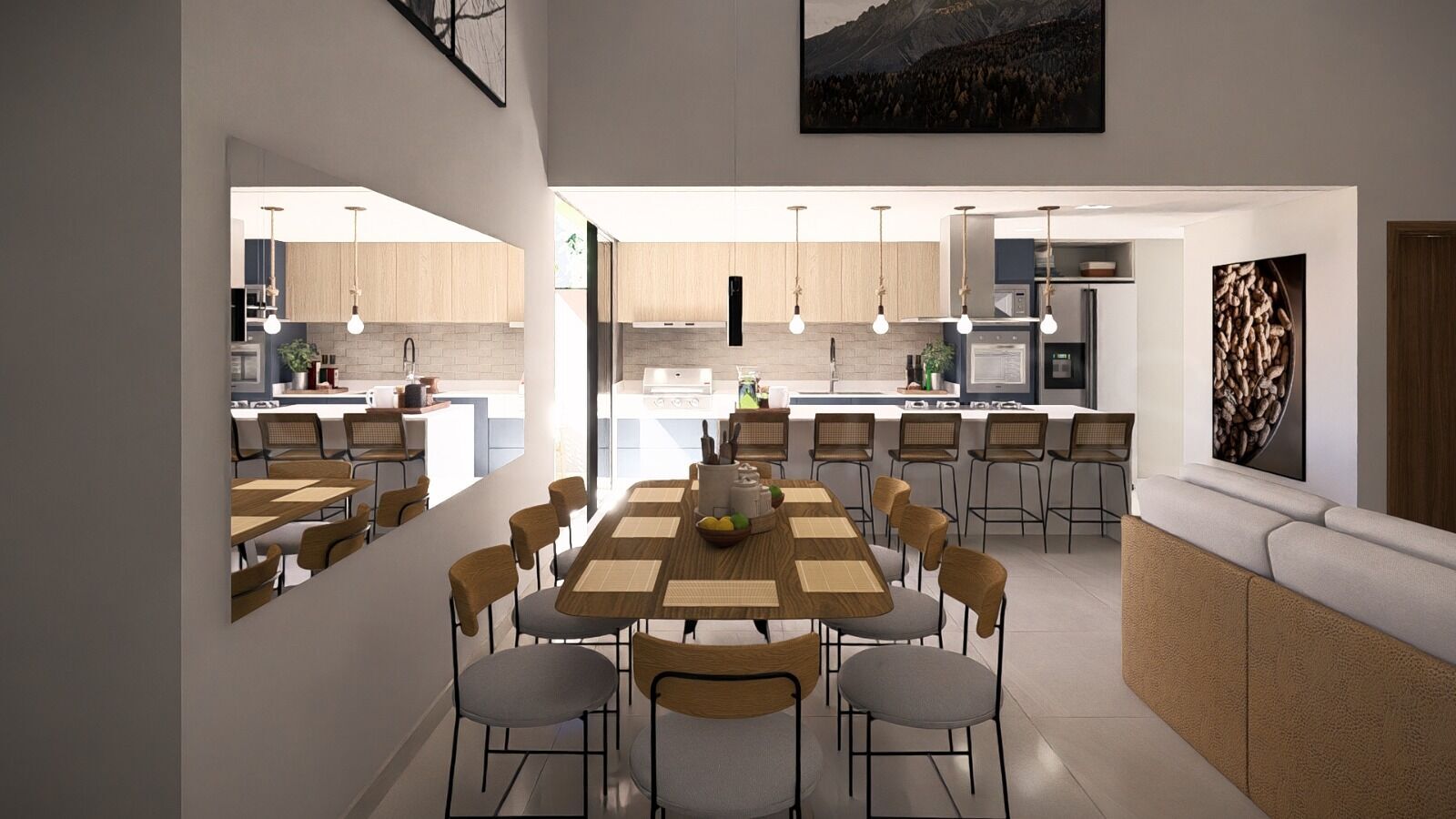 Imagine receber amigos em uma cozinha gourmet totalmente integrada às salas de estar e jantar, criando um ambiente amplo e fluido. E para os momentos de descanso: