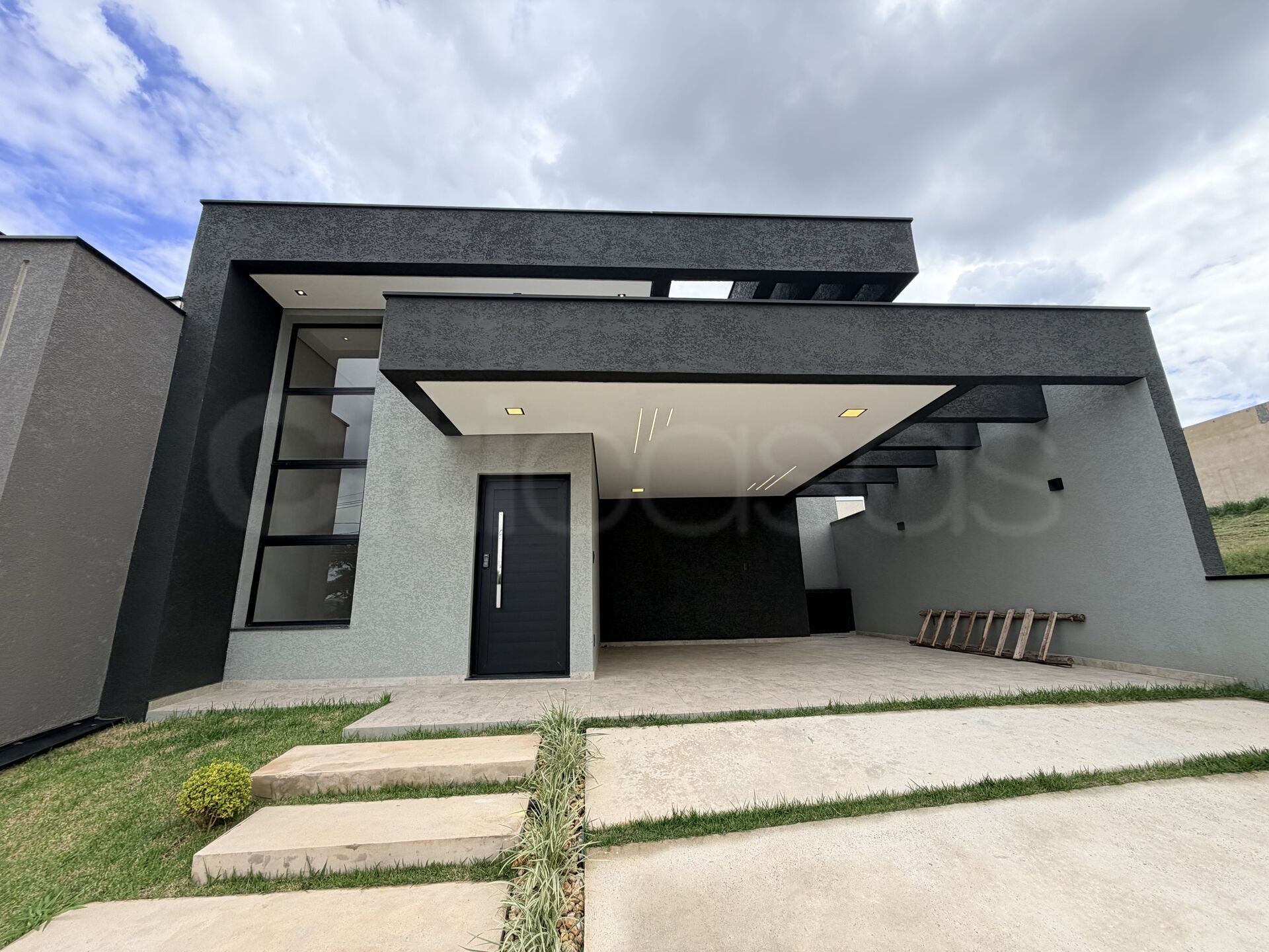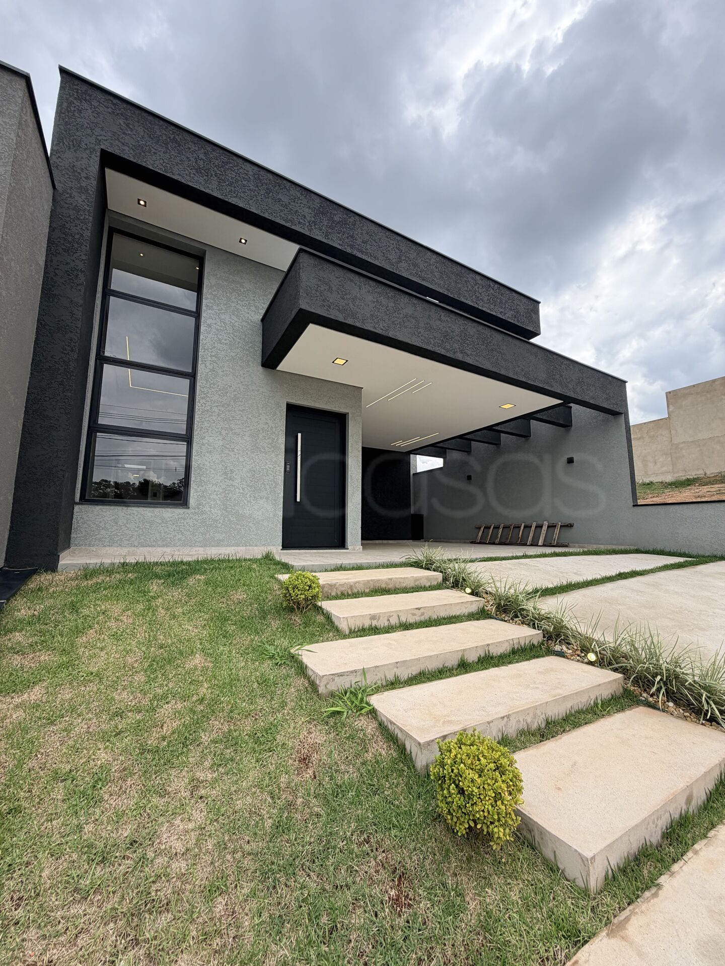 - Sala e cozinha integradas, garagem para quatro carros (2 vagas cobertas), lavabo, banheiro social, dispensa, área gourmet, 3 quartos (1 suíte master com closet e duas pias), lavanderia