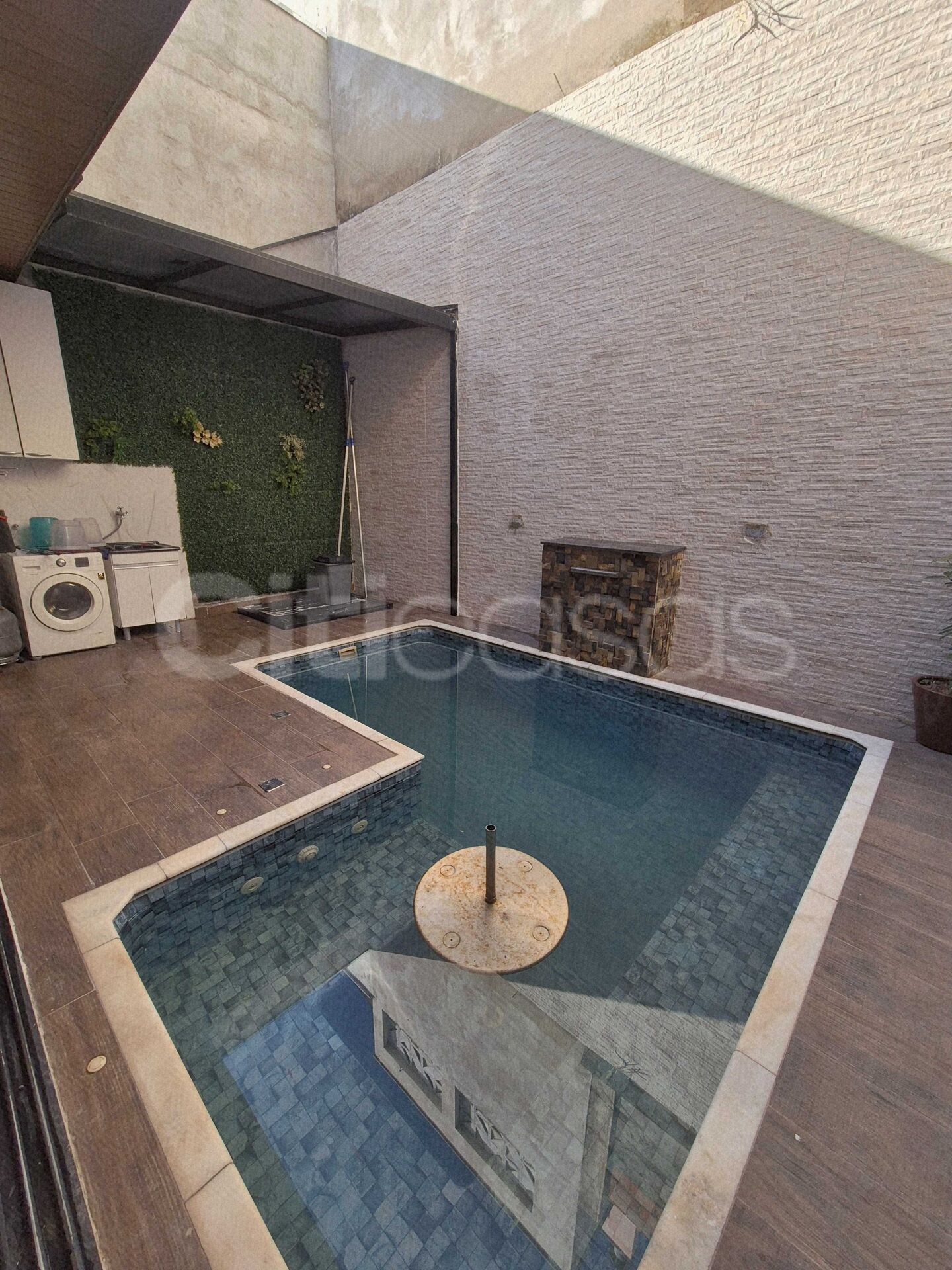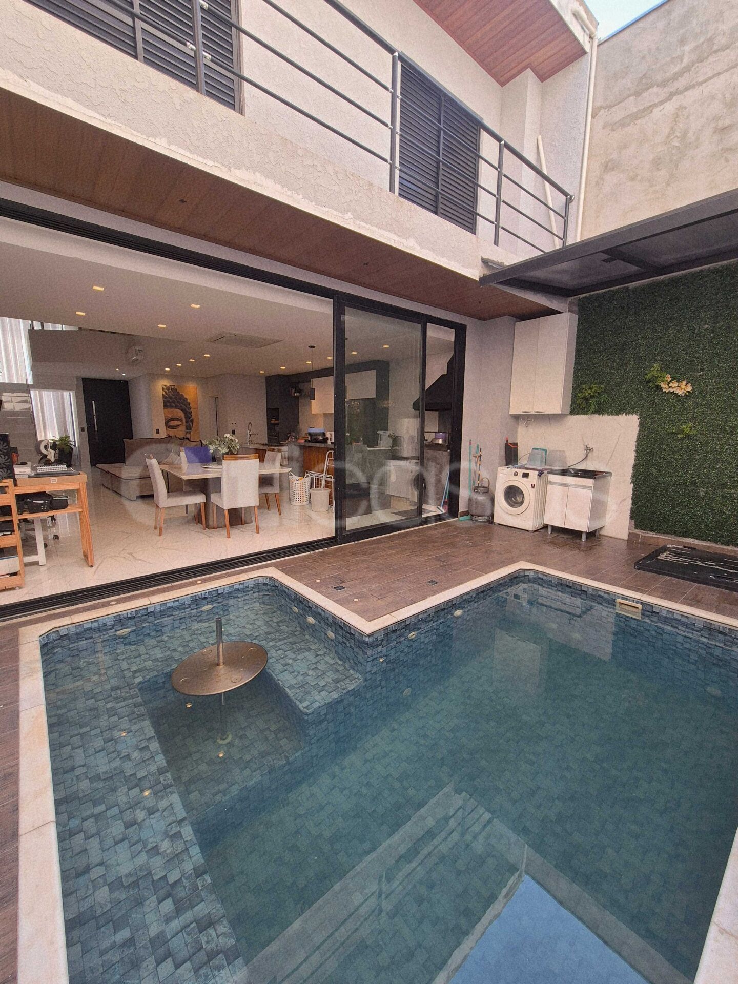 Piscina com hidromassagem, cascata e aquecida com energia fotovoltaica