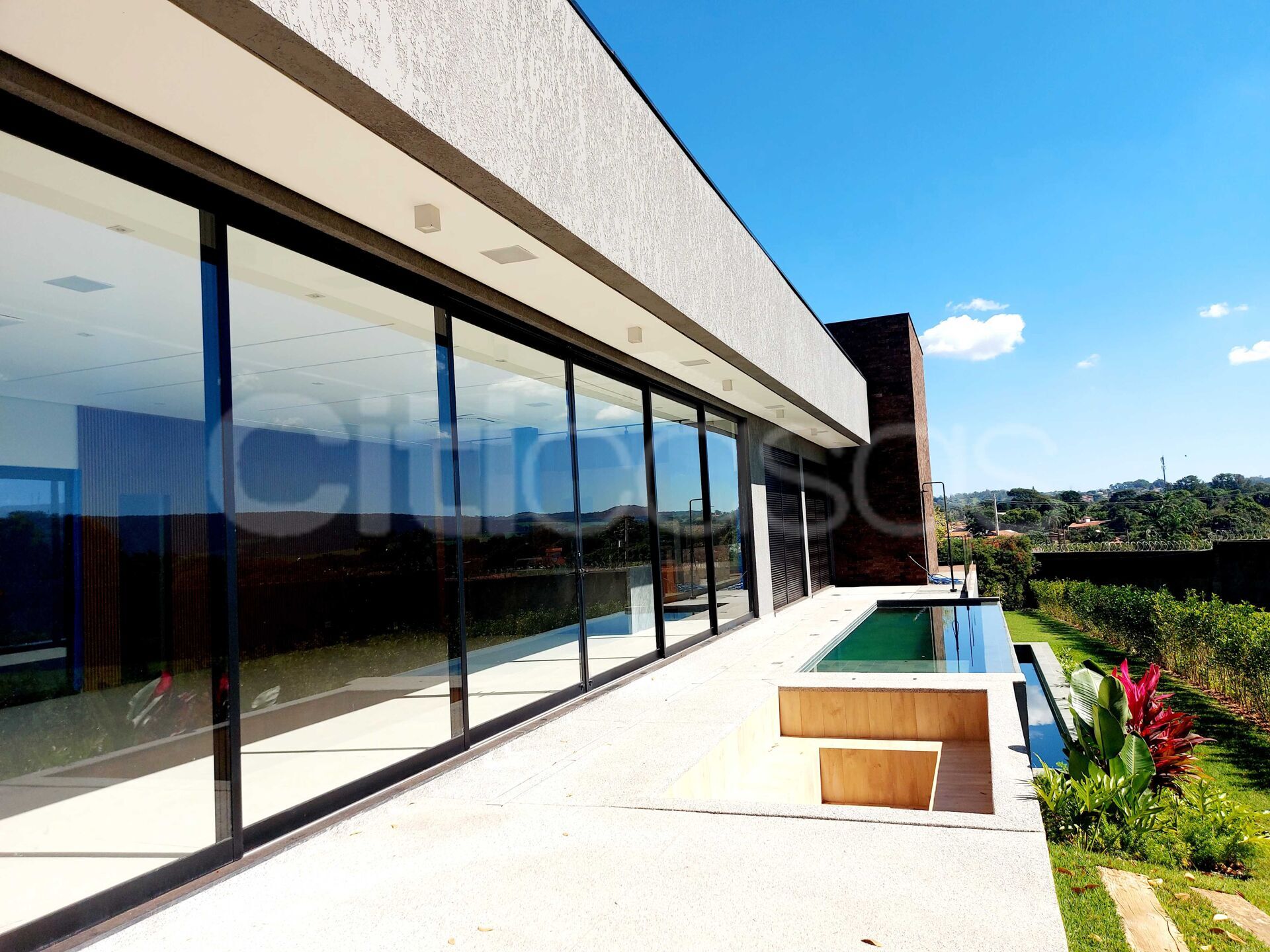 Maravilhosa casa térrea de 320m² no condomínio Lago Azul Golfe Clube com 4 suítes sendo 1 master, sala integrada com a cozinha e área gourmet, piscina, lareira e uma linda vista permanente para o morro Ipanema.